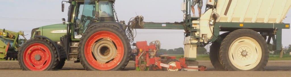 Daarom hebben we een machine ontwikkeld die in een aantal fijnzadige gewassen zoals peen, kroten en uien de onkruiddruk fors beperkt: de compostzaaier. Deze machine legt direct na het zaaien, dus in één werkgang, een strookje compost op het zaad.