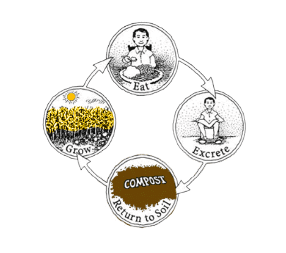 De landbouw produceert voedsel en levert dit aan de consument. Die verplaatst het van het porselein in de keuken naar het porselein in het kleinste kamertje. Van daaruit gaat het via het riool, hup de verbandingsoven in. Of erger nog, de oceaan. Weg mineralen.